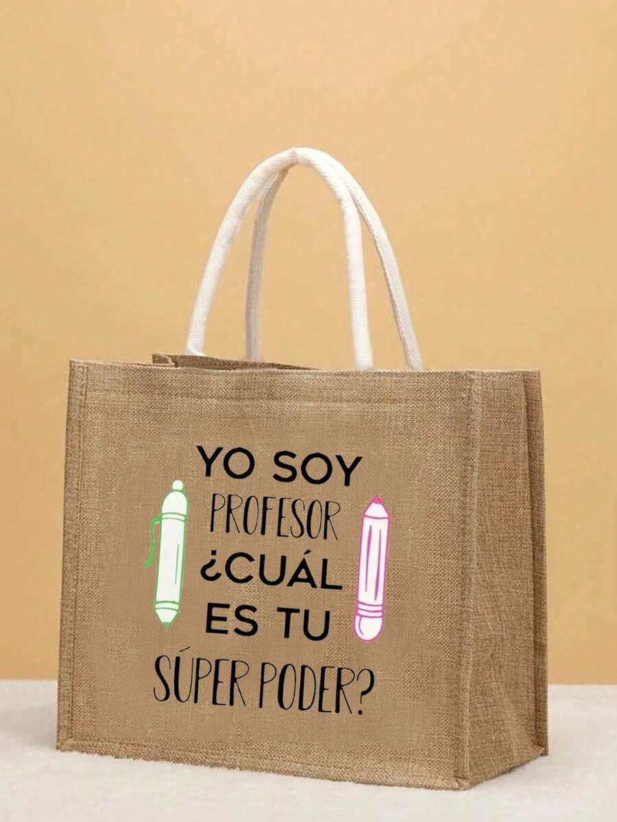 'Yo Soy Profesor' Cual Es Tu Superpoder Spanish Print Fashionable Cute Letter Pattern Storage Bag, Christmas Storage Bag, Linen Tote Bag, Hand Shopping Bag, Tote Bag, Lightweight Foldable Storage Bag, Simple Shopping Bag, Tote Bag, rThanksgiving Storage Bag, Thanksgiving Gifts For Friends And Besties, Gifts For Mothers, Suitable For Personal Travel Cosmetics, Shopping Bags, Large-Capacity Storage