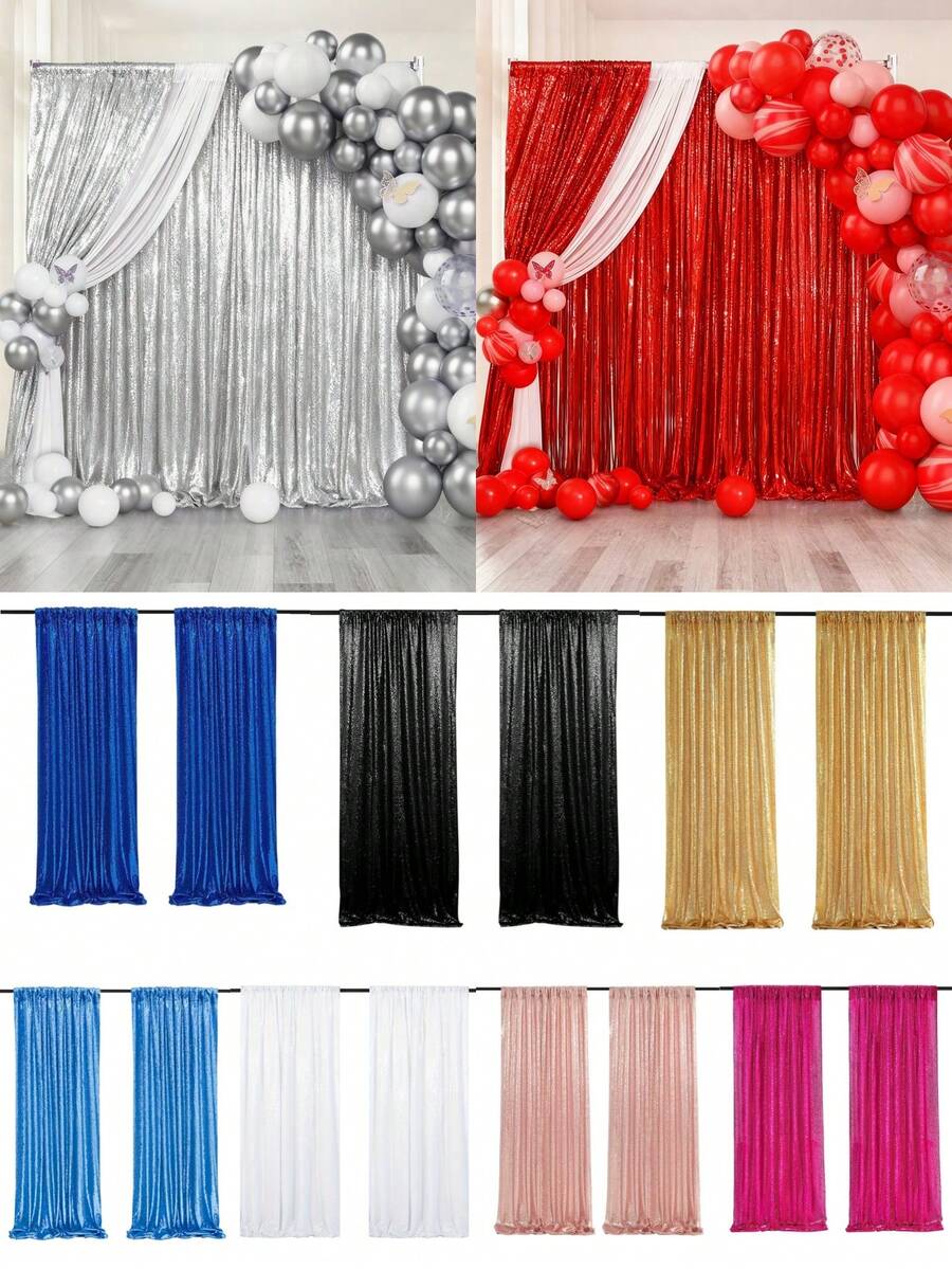4pcs Shiny Sequin Party Background Cloth Curtains, Birthday Decorations, Birthday Banner Birthday Background Cloth, Birthday Party Supplies, Reuse Curtains For Home Decor, Wedding Decor, Babe Shower Decor, Daily Use And Party, Wedding Decorations, Wedding Supplies, Party Faovors, Birthday Gifts, ,Wedding Arch Fabric