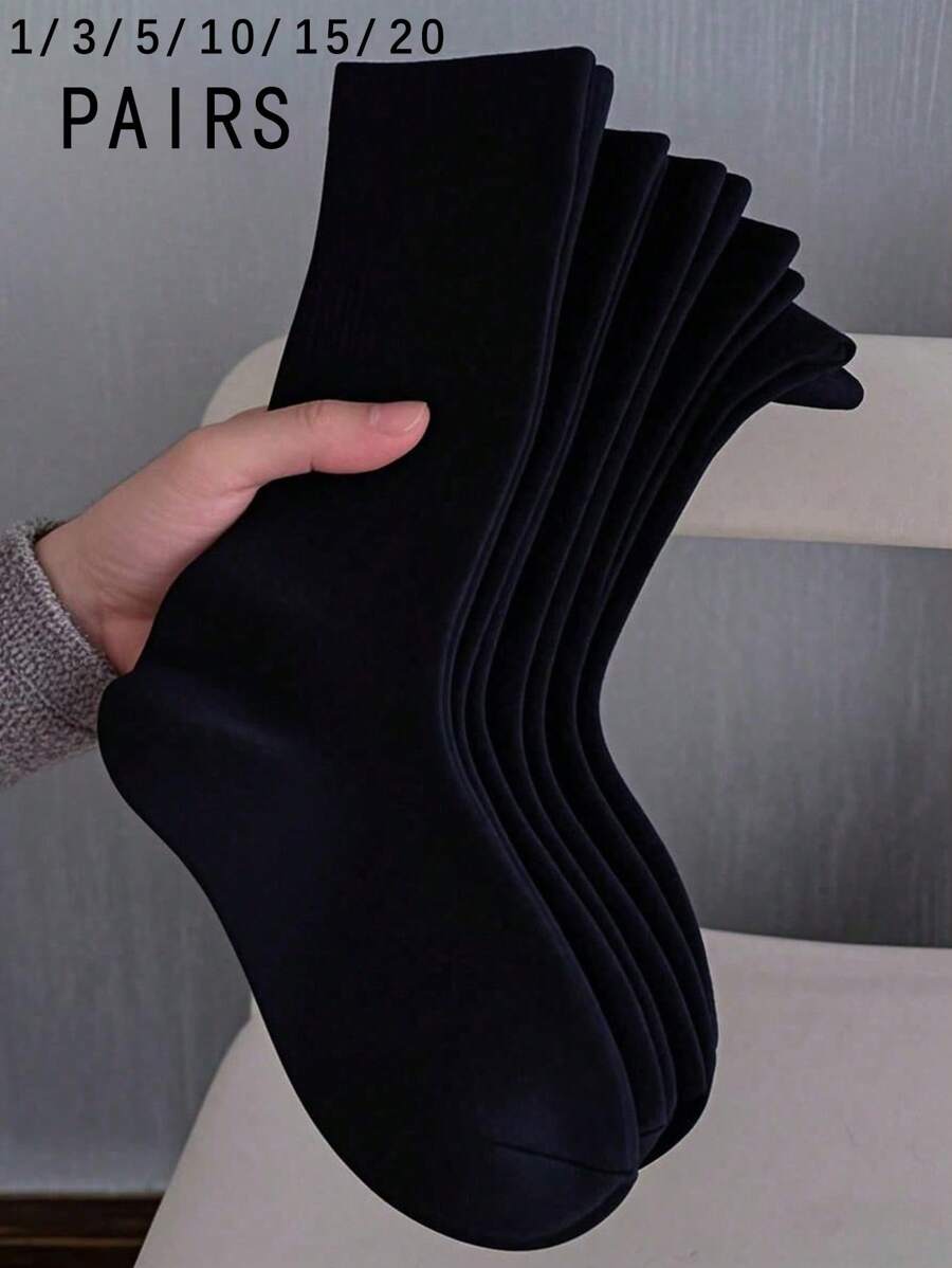 1/3/5/10/15/20 Pairs Women Black Wide Mouth Comfortable Simple Maternity Socks, Moisture-Wicking Mid-Calf Socks