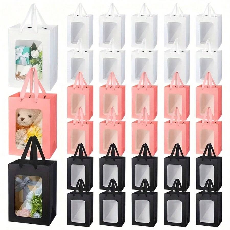1/5pcs Elegant Square Gift Bags With Clear Window, Suitable For Displaying Bouquets, Baby Shower, Mother's Day, Christmas, Valentine's Day Flower Gifts, Ideal For Giving Small Gifts, Holiday Parties, Wedding Gift Boxes, Birthday Gift Bags, Gift Packaging Bags, Flower Shop Gift Bags, Ladies' Gift Bags, Gift Bags, Retail Packaging Decorations, Suitable For Shopping, Parties, Weddings, Birthdays, Holidays, Valentine's Day, Teacher's Day And Other Occasions.