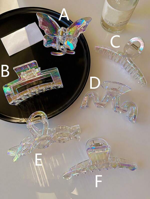 1-6pcs Women'S White Mermaid Inspired Holographic Square/Butterfly/Wave Shaped Hair Clip, Fashionable And Versatile, With A High Sense Of Style, Suitable For Daily Wear, Parties, Tying Hair, Washing Your Face, Bathing, Putting On Makeup And Matching Clothes.
