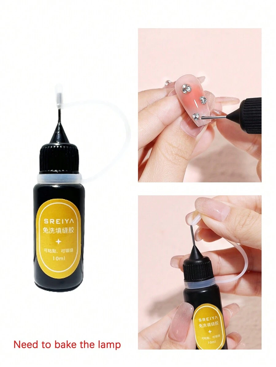 1bottle 10ml No-Wash Joint Filler Nail Art Diamond Glue With Needle Tube, Firmly Adhesive For Nail Salon