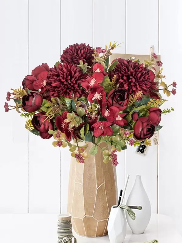 1 Bouquet Of Artificial Tea Bud, Pom Pom Chrysanthemum, Filler Flower Bridal Bouquet For Wedding Home Party Decoration