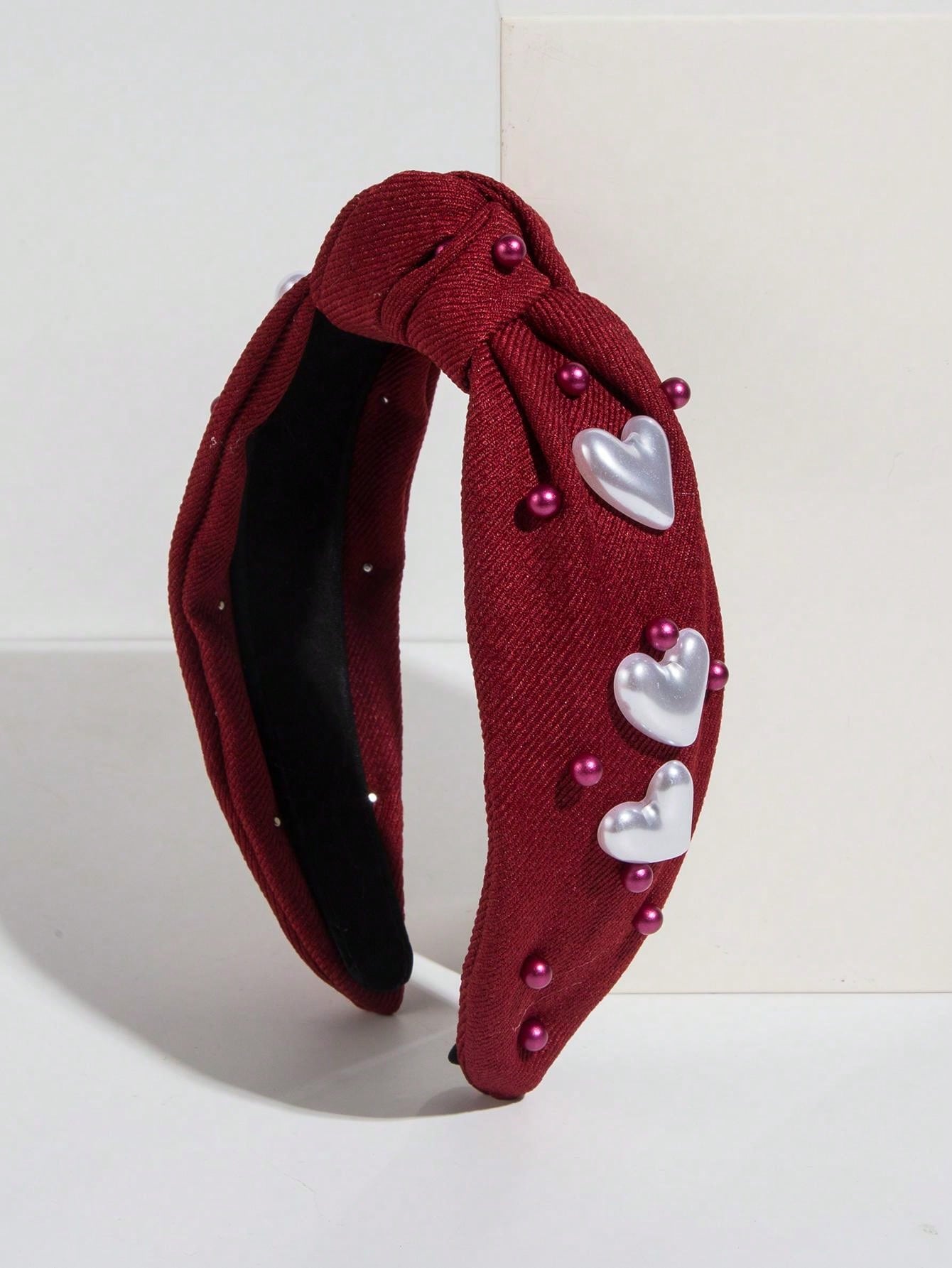 1 Girl'S Knotted Love-Shaped Pearl Headband