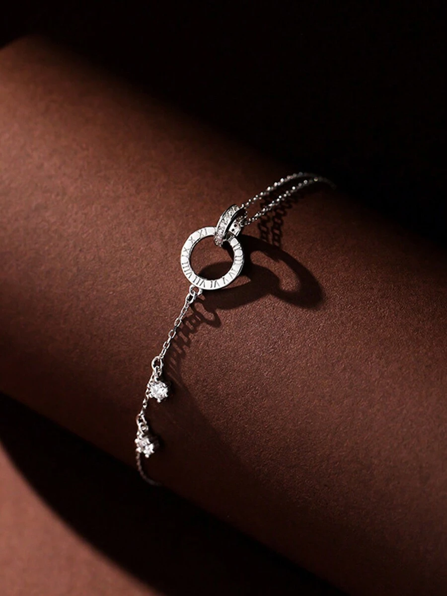 1 Light Luxury High-End S925 Sterling Silver Key Ring Small Round Beads Double Layer Stackable Fine Adjustable Bracelet Gift For Girlfriends