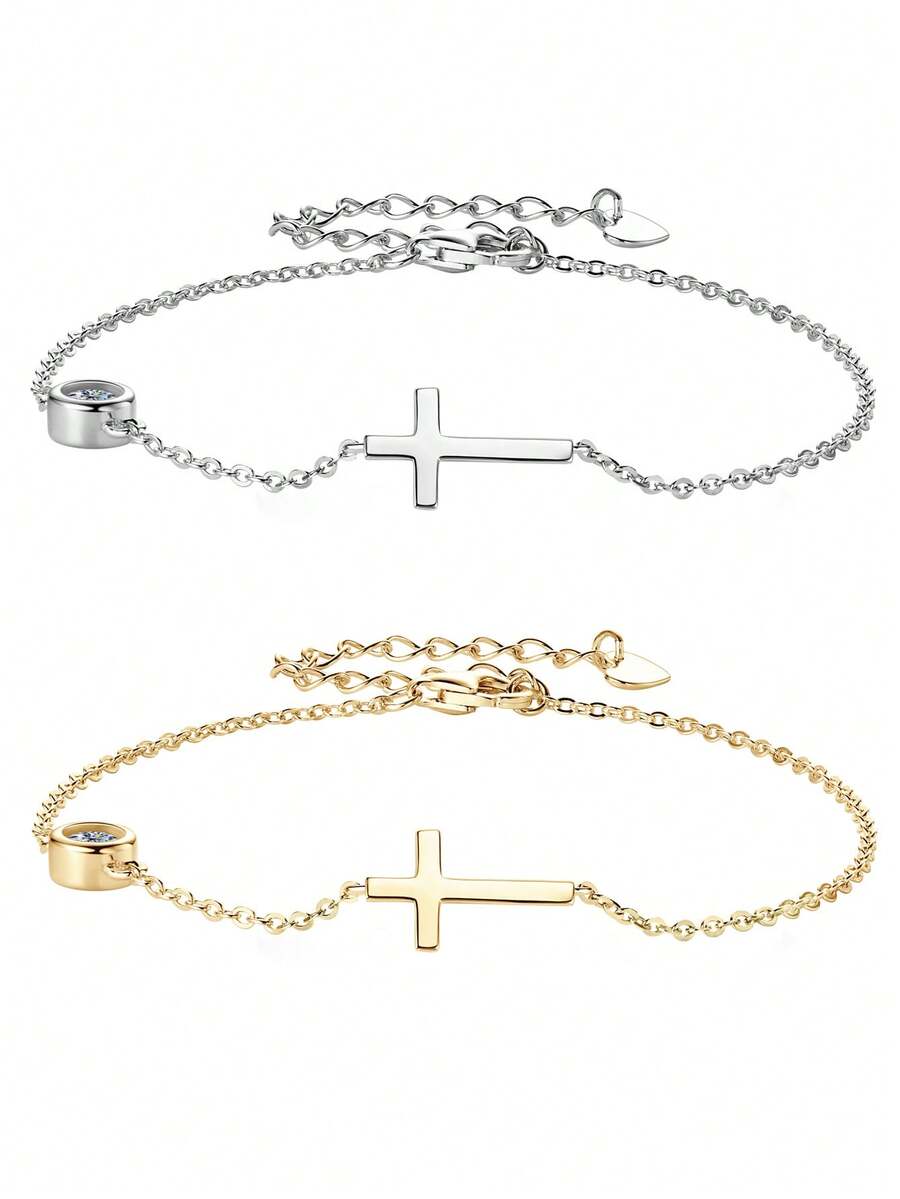 XUJIA 1pc 925 Sterling Silver 4mm (0.3 Carat) Round Cut Moissanite Bracelet, Classic Cross Design Bracelet, Women's Daily/Birthday/Anniversary Jewelry Gift