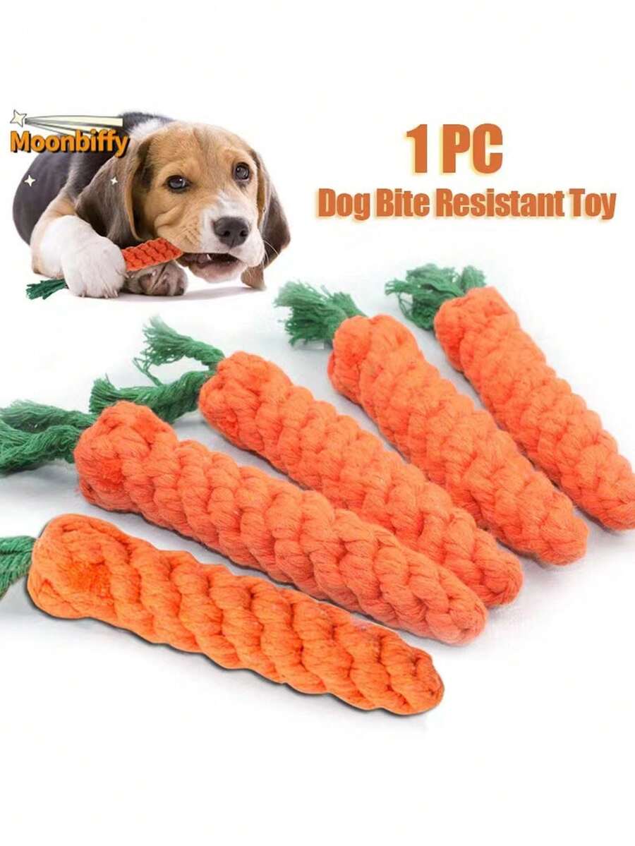 1 PC Carrot Design Chew Toy for Pet Puppies, Hand Woven Teeth Cleaning and Teeth Grinding Resistant Rope Puppy Toy Carrot