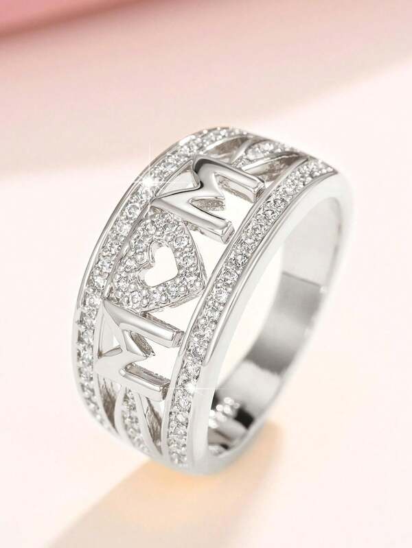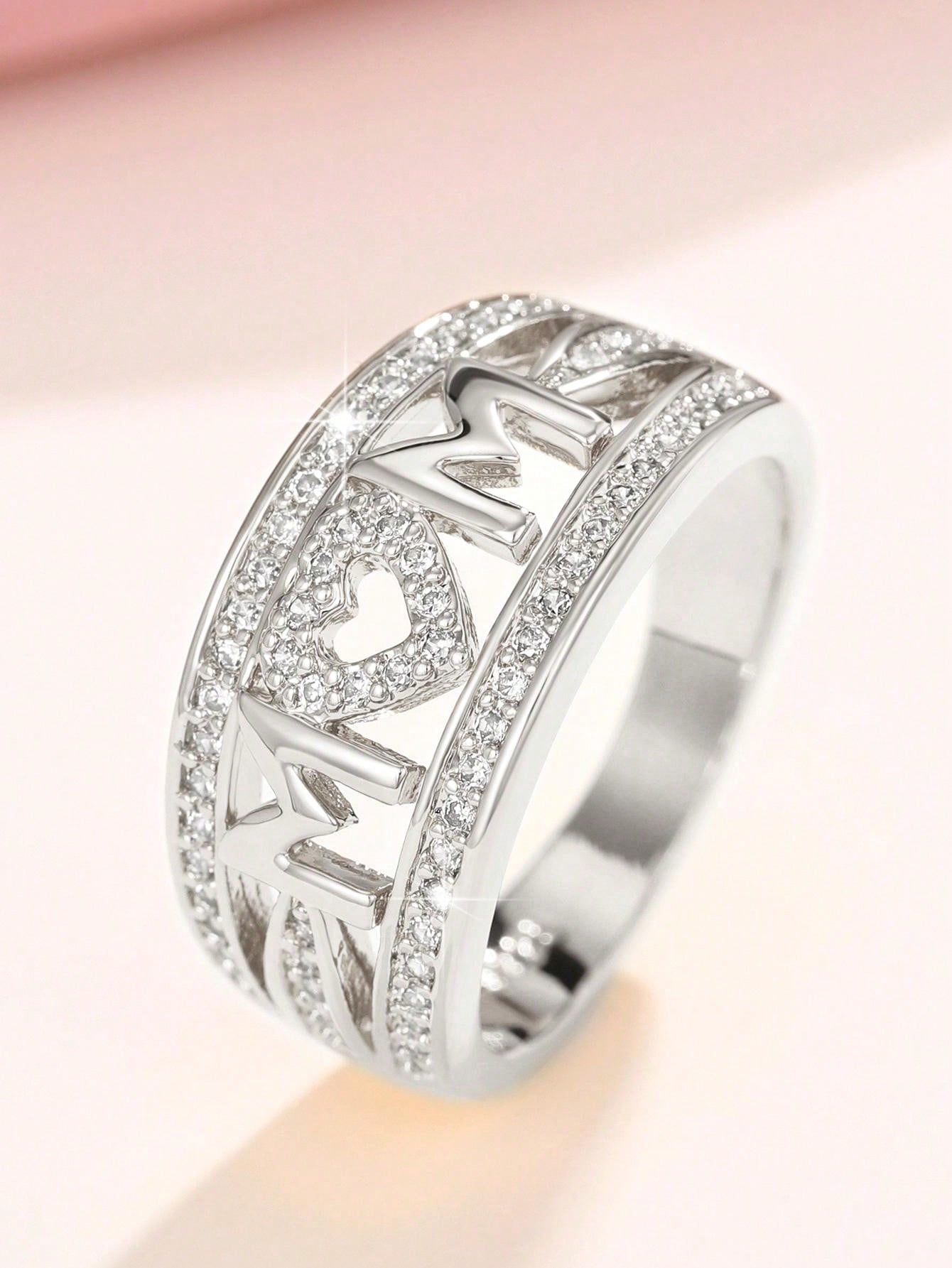 1 PC Elegant Cubic Zirconia Mom Ring For Women For Mother'S Day Gift Anniversary Party Jewelry