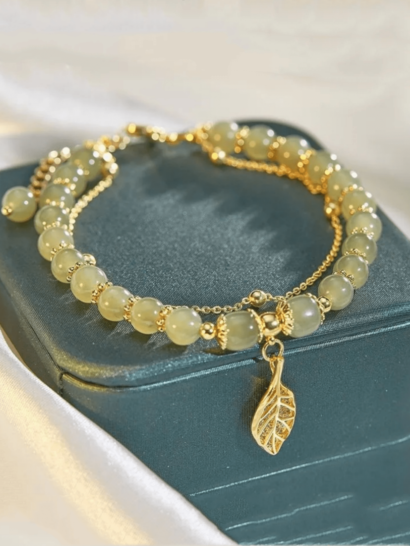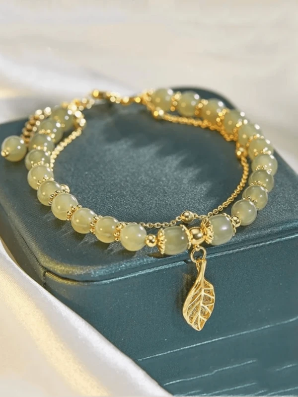 1 PC Green Bamboo Knot Antique Leaf Beading Imitation Natural Hotan Jade Bracelet Small Leaf Hand String Valentine'S Day Gift