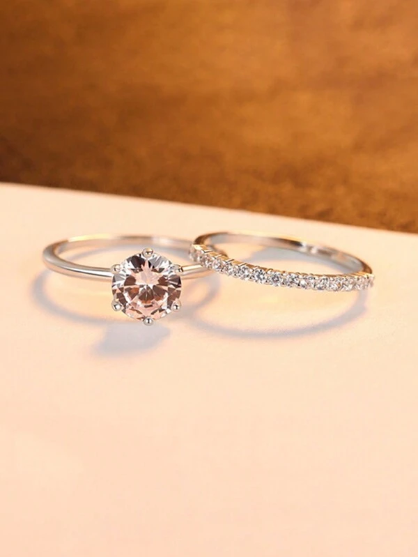 1 PC S925 Silver Ring Set With Simplified Combination Ring In Korean Version Temperament New Year Ring Valentine's Day Gift Wedding Jewelry