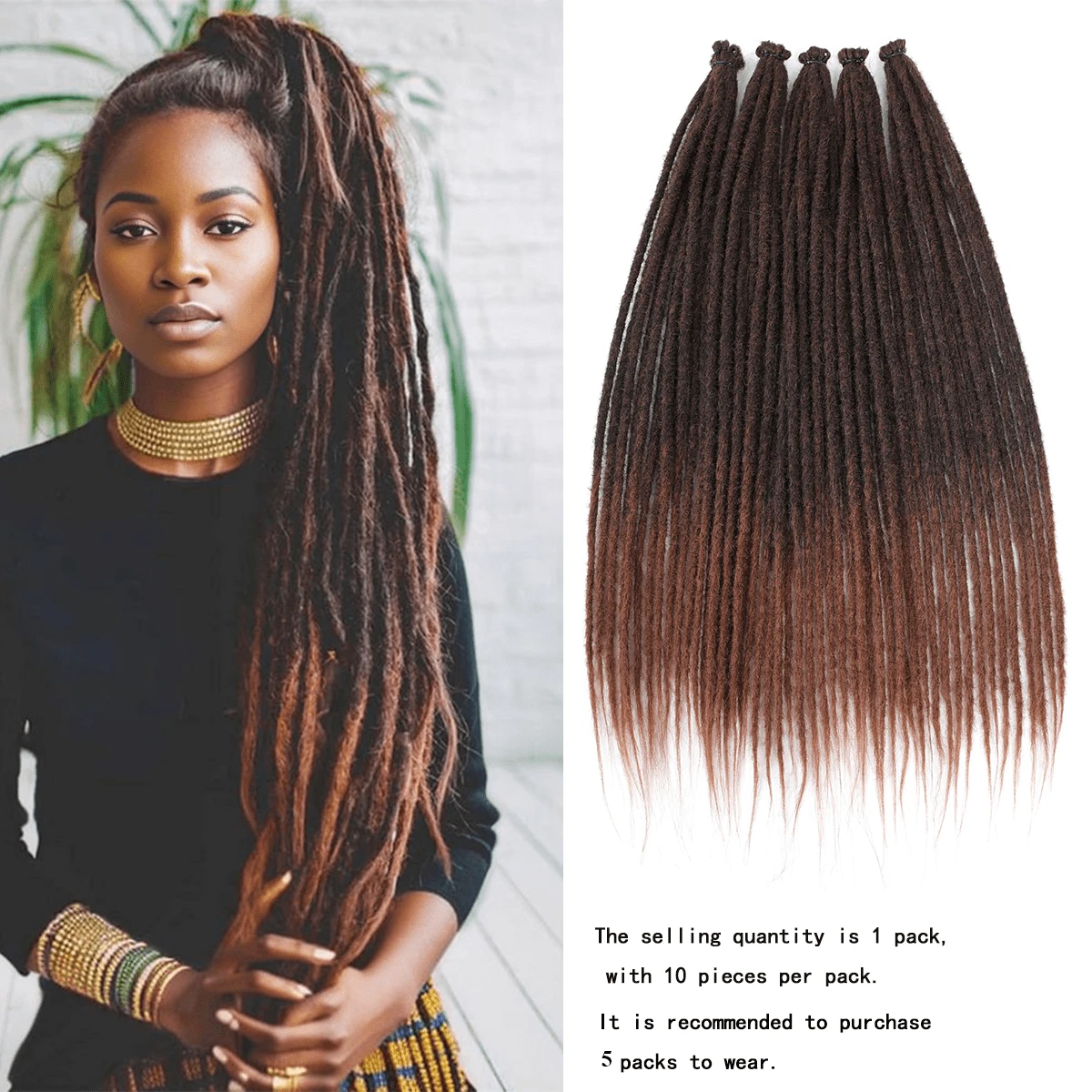 1 Pack(10Strands) Thin 0.6cm Dreadlock Handmade Hip-Hop Style Dreadlocks Extensions Ombre Brown 18-36Inch Synthetic Heat Resistant Wigs Pre stretched Hair Extensions Braiding Hair