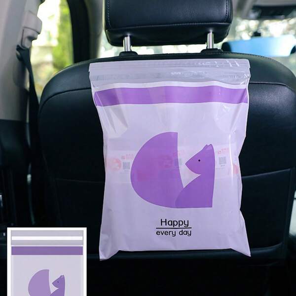 1 Pack (15pcs) Self-Adhesive Plastic Storage Bag, Car Trash Bag, Desk Cleaning Bag, Kitchen Waterproof Garbage Bag, Office Storage Bag, Portable Plastic Bag For Car, Office, Kitchen, Outing