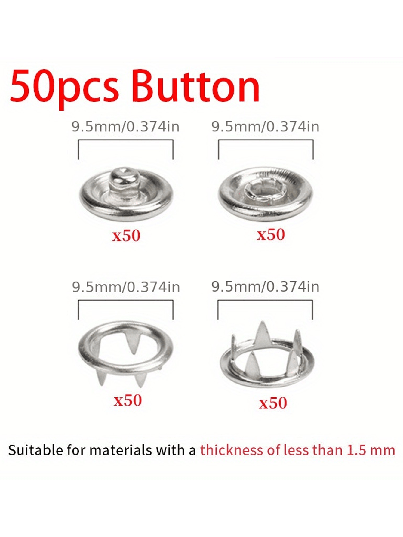 1 Pack 200pcsSnap Fasteners Tool Kit Hollow And Solid Metal Prong Snaps Buttons Clothing Leather Crafting Sewing
