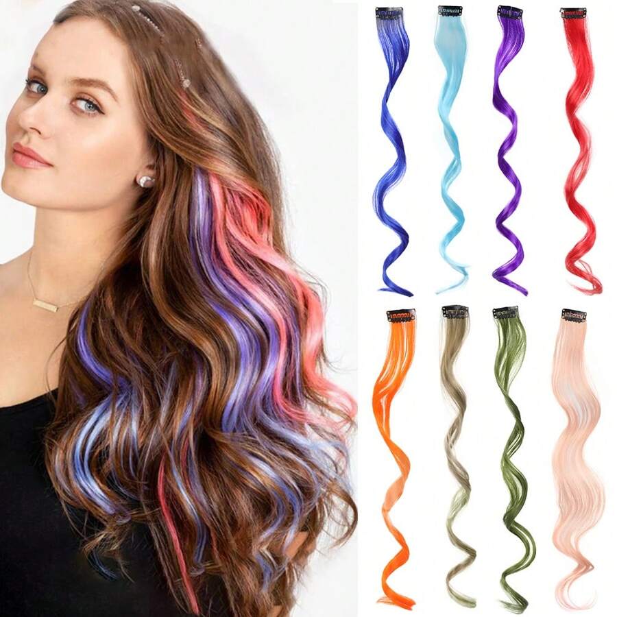 1 Packs Colorful Hair Extensions Curly One Clip In Synthetic Long Hairpiece For Girls Women Party Highlights Wig Piece,Suitable For Various Occasions, Including Music Festivals, Black Friday, Parties, Vacations, And All Seasons