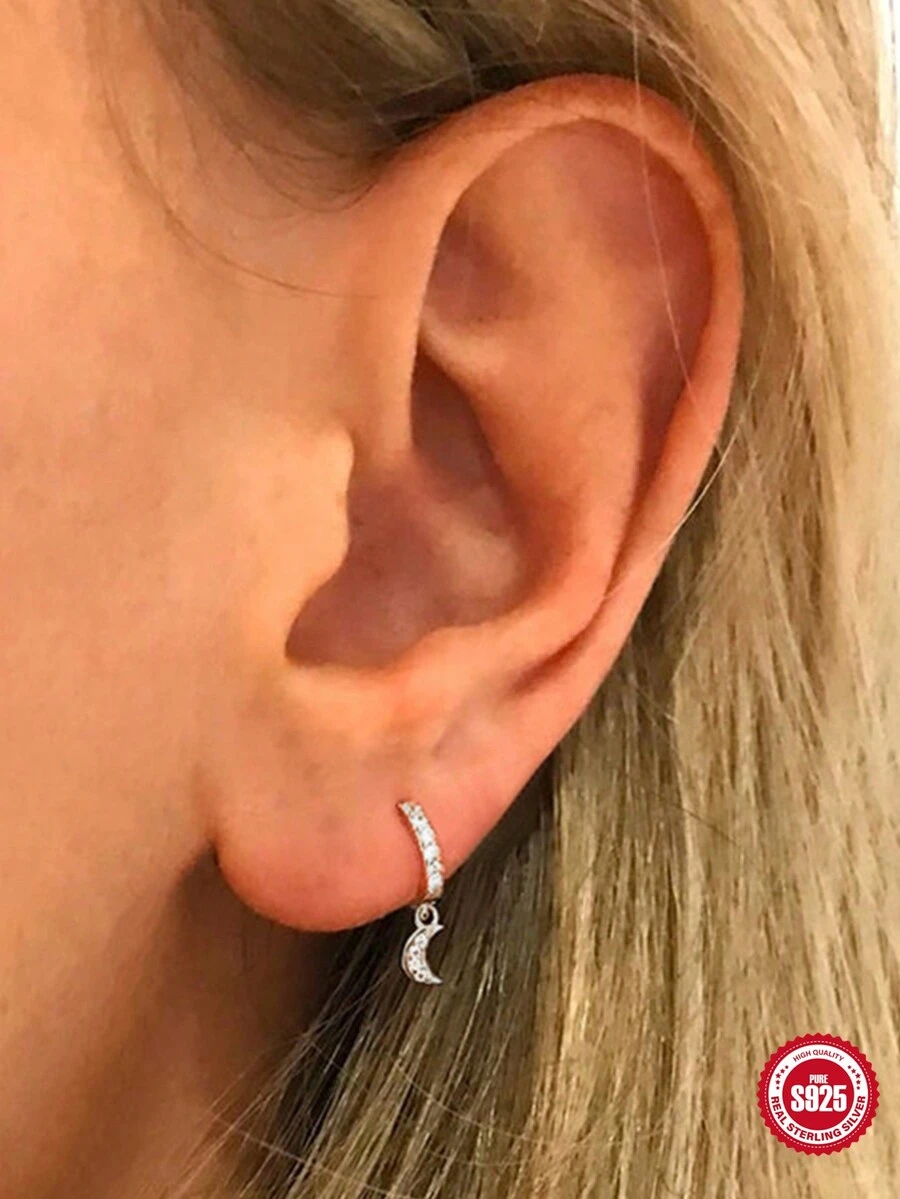 1 Pair 925 Stering Silver Asymmetrical Zirconia Earrings