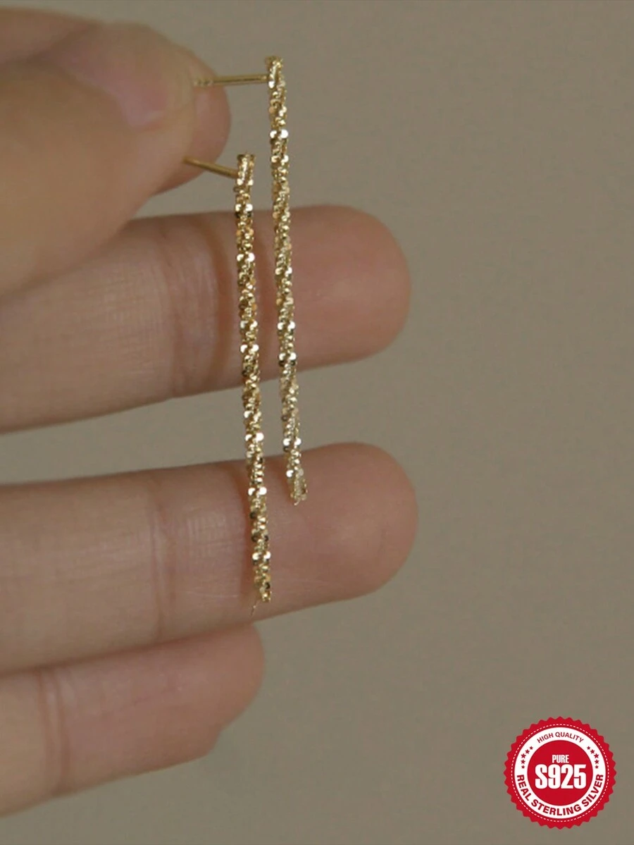 1 Pair 925 Sterling Silver Chain Tassel Pearl Drop Earrings Stud Earrings Long Line 18K Gold Plated Ear Drangles Earrings For Women Pendientes Jewelry