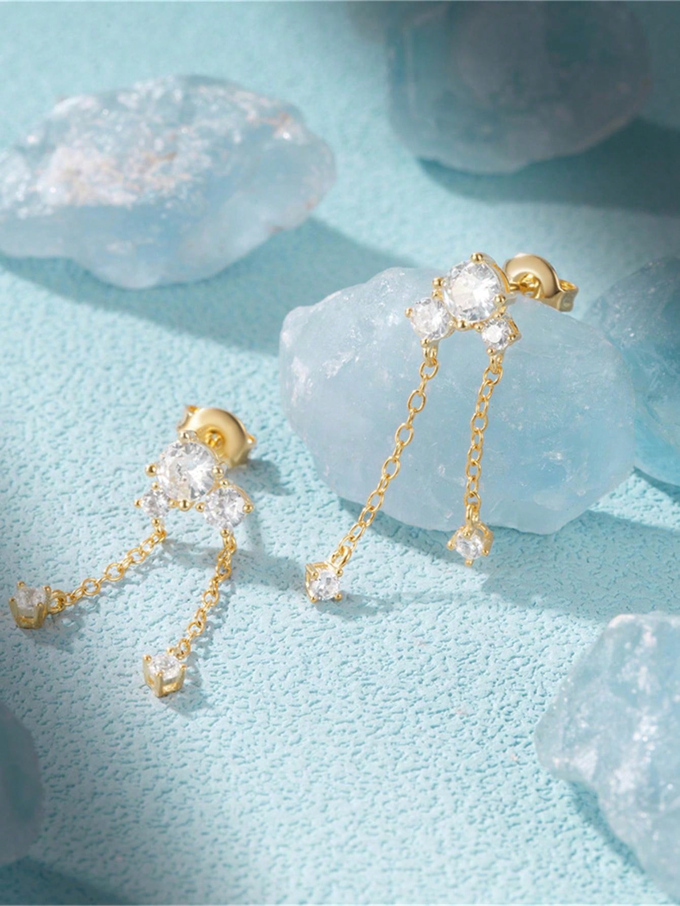 1 Pair 925 Sterling Silver Big Dipper Tassel Earring For Women Classic Drop Earring 18K Gold Plated Perfect For Wedding As Festival Gift Fine Jewelry