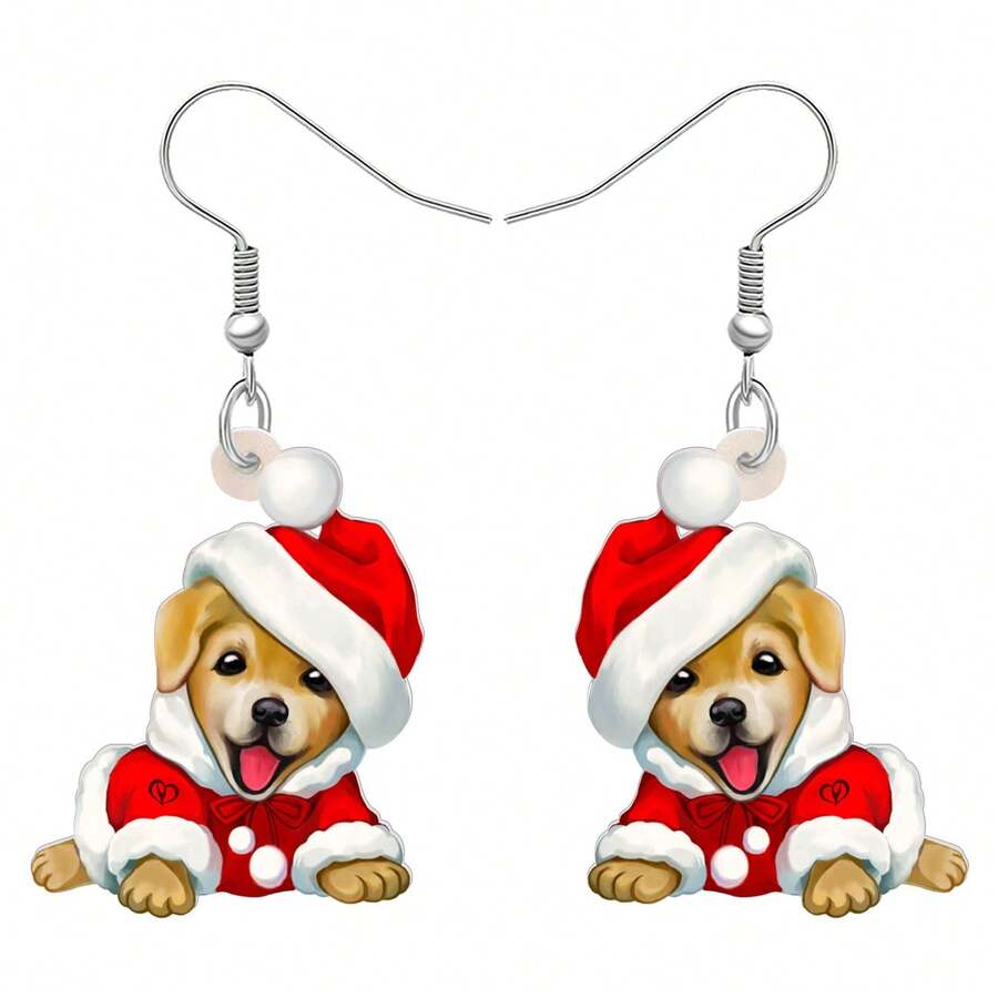1 Pair Acrylic Cartoon Christmas Hat Golden Retriever Dog Earrings Dangle Drop Puppy Pets Animals Jewelry Gifts For Women Girls Kids Dog Lovers