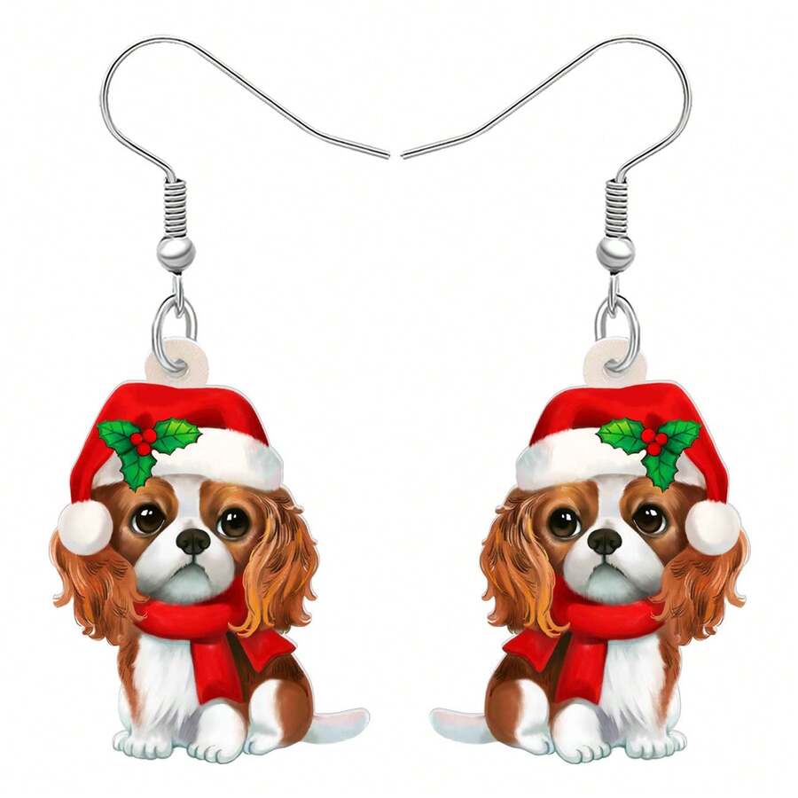 1 Pair Acrylic Cute Christmas Hat Cavalier King Charles Spaniel Dog Earrings Dangle Drop Puppy Pets Jewelry Gifts For Women Girls Kids Dog Lovers