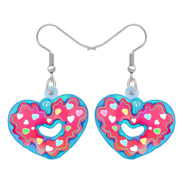 1 Pair Acrylic Valentines Day Gifts Sweet Donuts Earrings Dangle Drop Love Heart Doughnut Dessert Snack Jewelry For Women Girls Kids Party Favors Decor