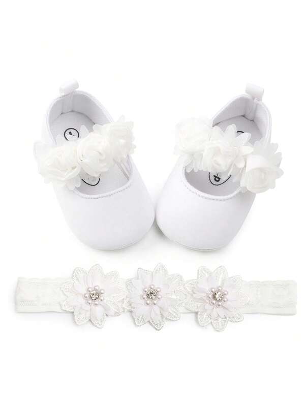 1 Pair Baby Girl's Floral Sandals With Hair Band, Soft Sole Walking Shoes
