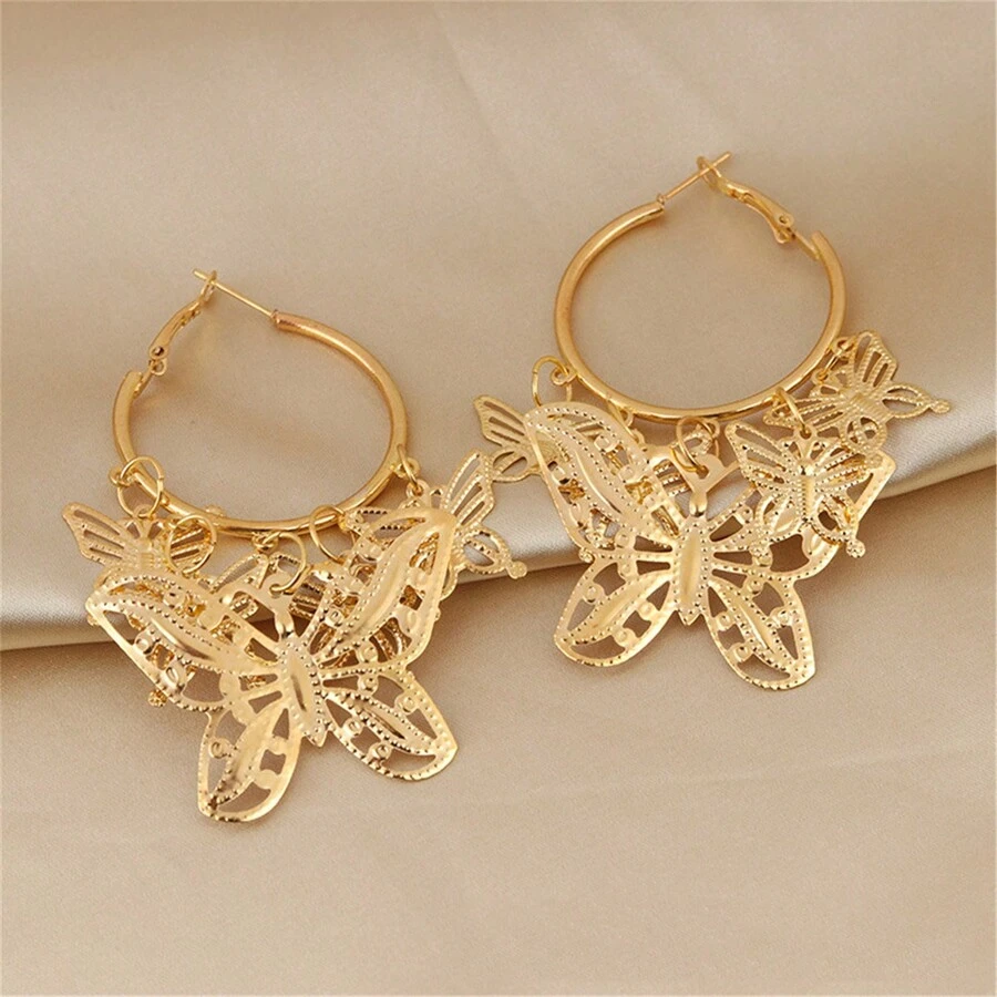 1 Pair Butterfly Big Hoop Earrings Gold Monarch Butterfly Dangle Earrings Party Vacation Jewelry Gift For Women Girls