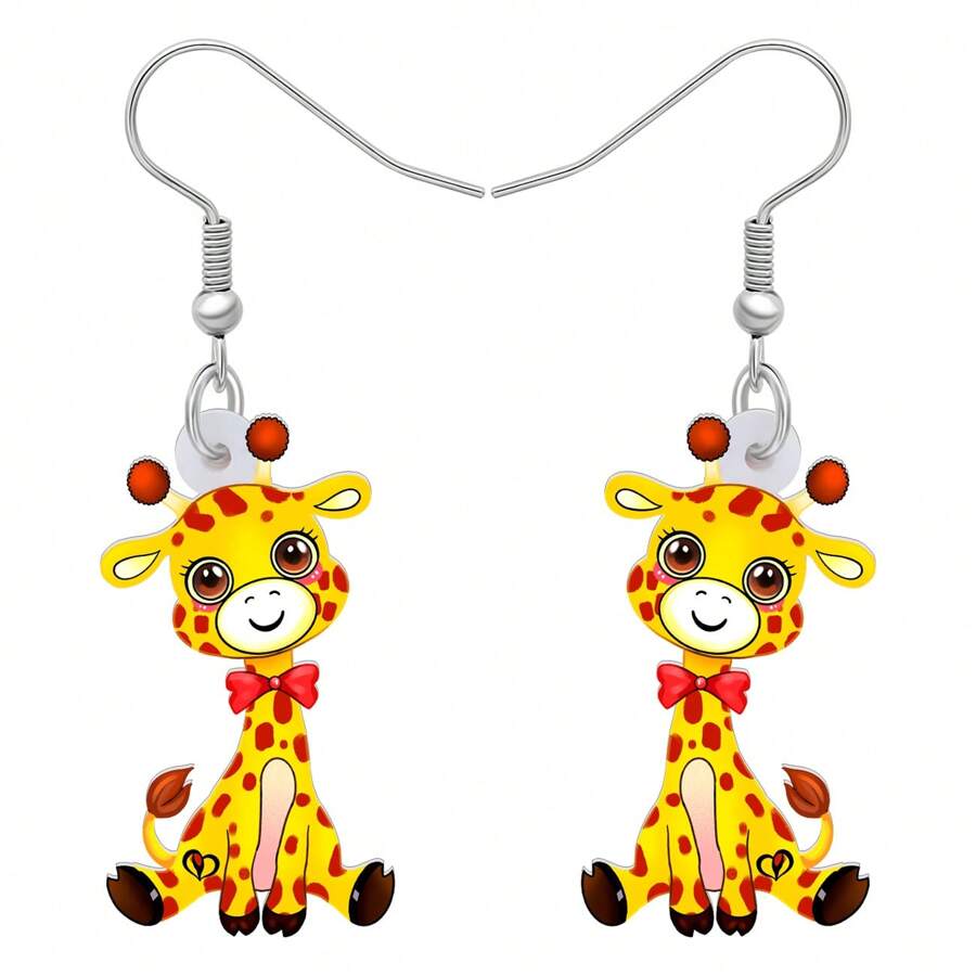 1 Pair Cartoon Acrylic Giraffe Earrings Wild Animals Dangle Jewelry For Women Kids Girls Birthday Party Gifts