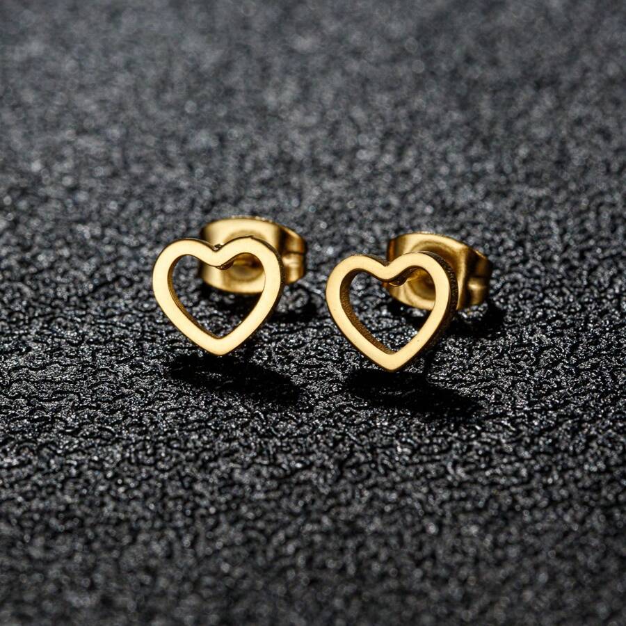 1 Pair Cute Small Simple Hollow Love Heart Stud Earrings Stainless Steel for Women