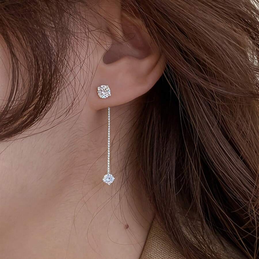 1 Pair Elegant Drop Earrings Inlaid Shiny Pendant Minimalist Earrings For Women & Girls