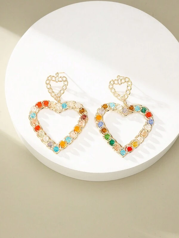 1 Pair Exaggerated Geometric Crystal Bead Wrapped Heart-Shaped Iron Earrings Suitable For Women'S Daily Wear.