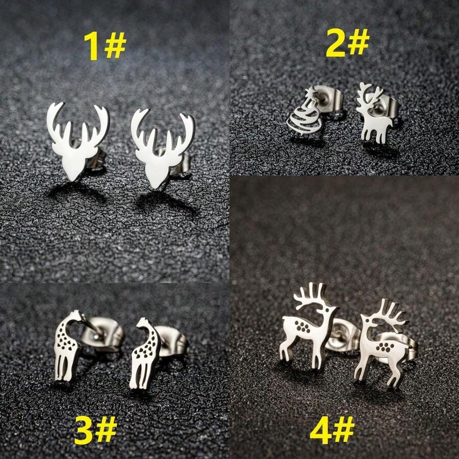 1 Pair Fashion Stainless Steel Golden Deer Head Antlers Stud Earring Charm Animal Earrings For Women Femme Simple Fine Jewelry DIY