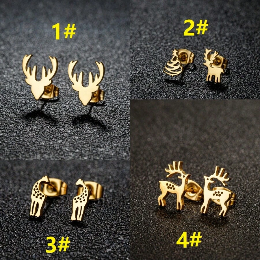 1 Pair Fashion Stainless Steel Golden Deer Head Antlers Stud Earring Charm Animal Earrings For Women Femme Simple Fine Jewelry DIY