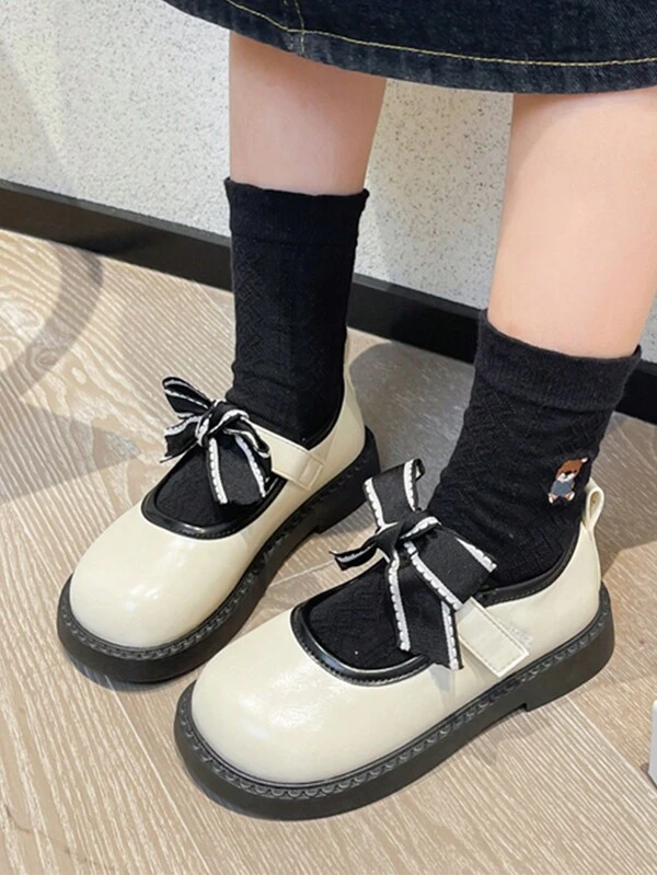 1 Pair Girls' Black & White Butterfly Design Flat Princess Shoes Suitable For Performance, Spring & Summer