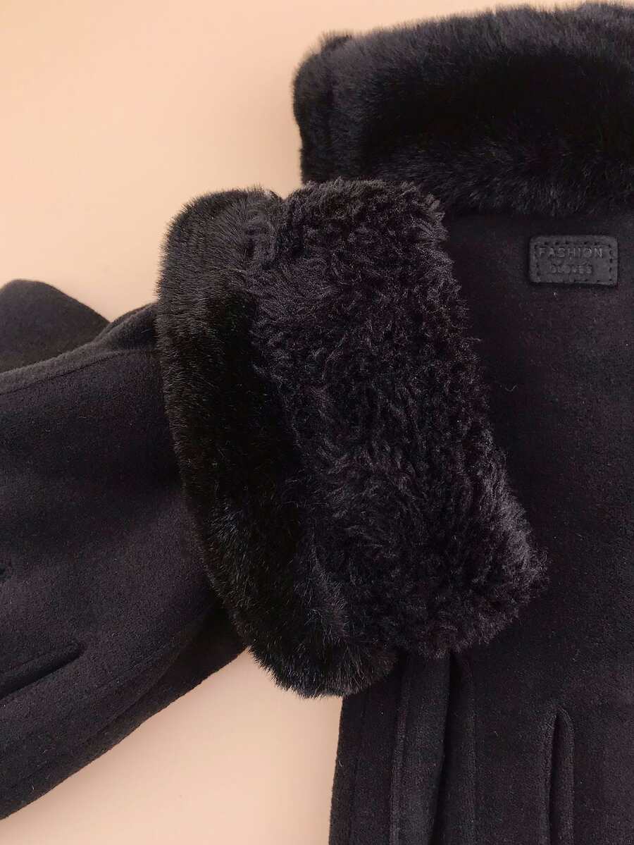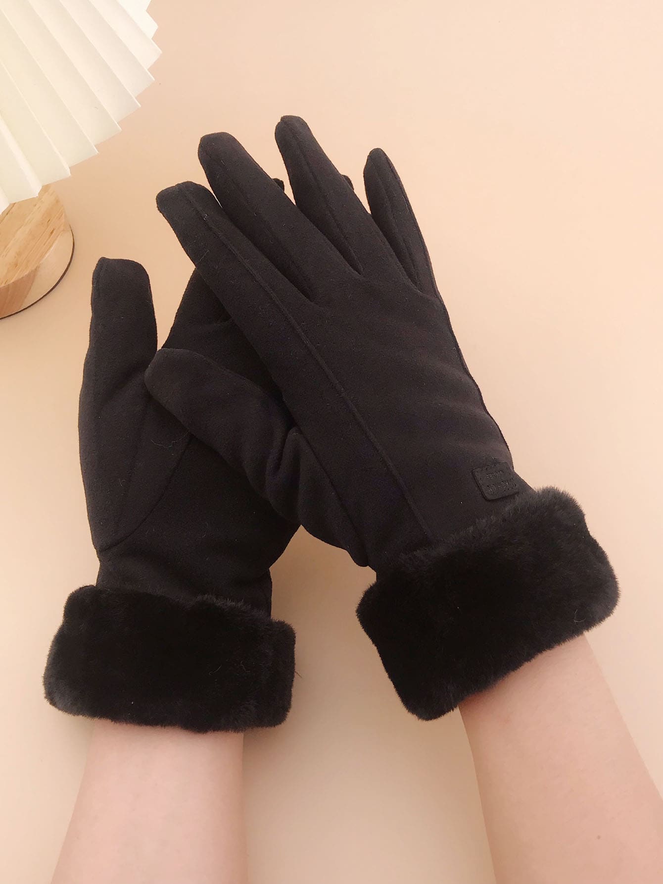 1 Pair Ladies' Black Thickened Velvet Windproof & Warm Touch Screen Gloves With Suede Fabric For Outdoor Activities, Cycling, Shopping & Gift