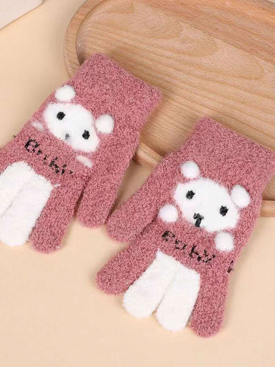 1 Pair Of Children's Gloves In Autumn And Winter For Girls Cute Knitted Five-finger Warm Finger Gloves For Boys And Girls Cartoon Baby Gloves