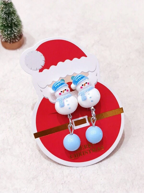 1 Pair Of Cute Cartoon Christmas Elk And Snowflake Christmas Gift Ear Clips For Girls