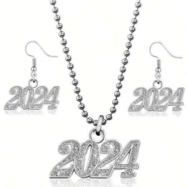 1 Pair Of Earrings+1 Necklace, Hip-Hop Style Jewelry Set, Sparkling 2024 Design, Perfect Decoration For The Upcoming New Year