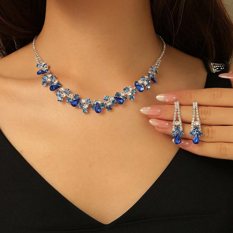 1 Pair Of Earrings + 1 Necklace Elegant Jewelry Set Silver Plated Inlaid Shining Rhinestone Pick A Color U Prefer Match Daily Outfits Party Accessories