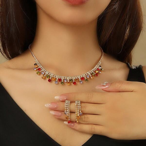 1 Pair Of Earrings + 1 Necklace Elegant Jewelry Set Silver Plated Inlaid Shining Rhinestone Pick A Color U Prefer Match Daily Outfits Party Accessories