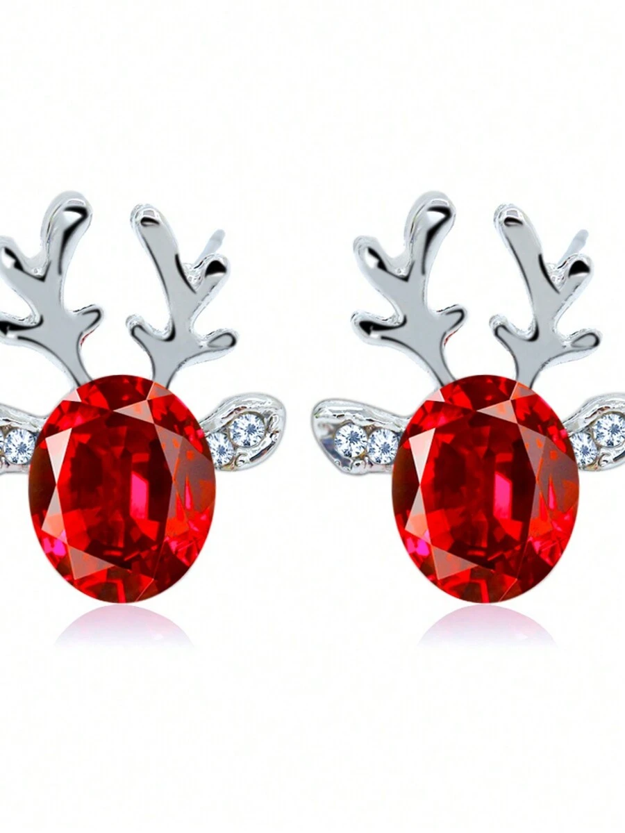 1 Pair Of Fashionable And Individual Temperament Alloy Crystal Gem Antlers Three-dimensional Christmas Reindeer Earrings For Women's Holiday Christmas Gifts