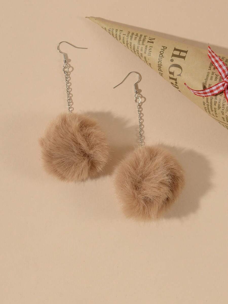 1 Pair Of Fashionable Khaki-Colored Long Sweet Girls Wool Ball Cute Earings.