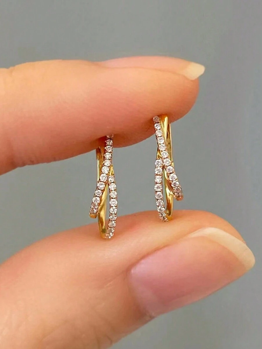 1 Pair Of INS Simple S925 Sterling Silver Set Rhinestone Earring Plated With 14K Gold Irregular Double Hoop Earrings For Women Gift