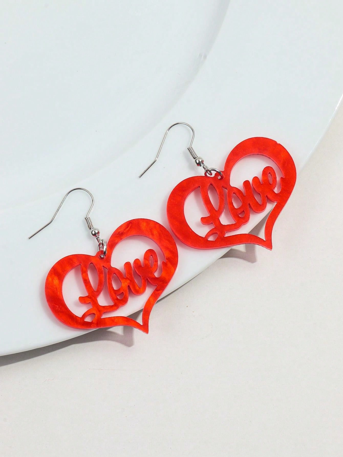 1 Pair Of Red Acrylic Valentine's Day Hollow Heart-Shaped Pendant Earrings Suitable For Daily Wear On Women Day As A Gift