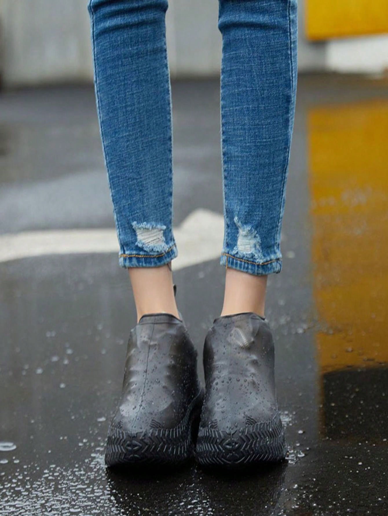 1 Pair Of S/m/l Size Waterproof And Sandproof Thick Silicone Rain Shoe Cover For Men And Women, Perfect For Outdoor Travel Or Rainy Days