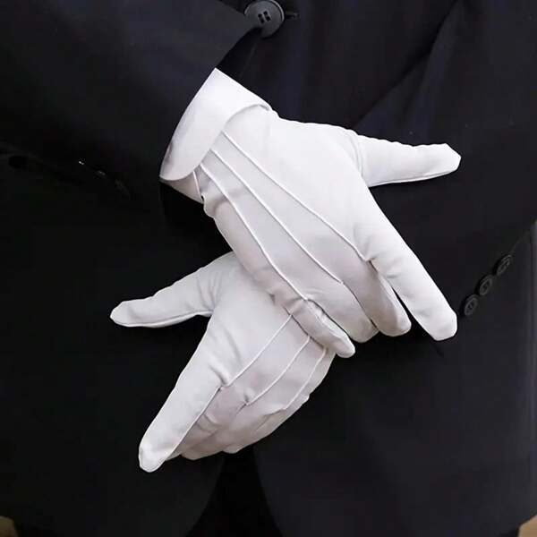1 Pair Of White Three-Ribbed Ceremonial Gloves, Thickened Non-Slip Driver Gloves, Sweat-Absorbent And Breathable Ceremonial White Gloves, Parade Gloves, Traffic Security Duty Gloves, Party Dress-Up Gloves