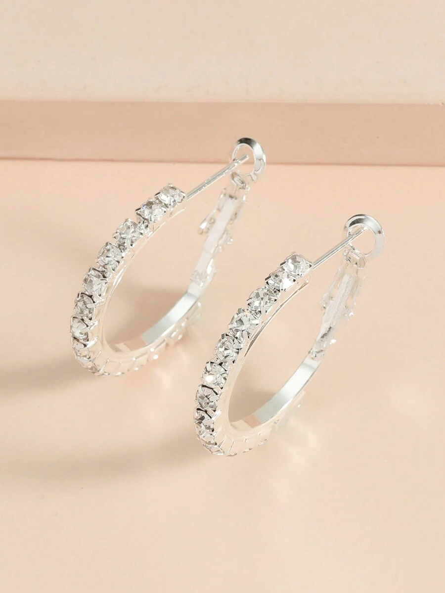 1 Pair Stylish And Exquisite Round Rhinestone Earrings Girls Festival