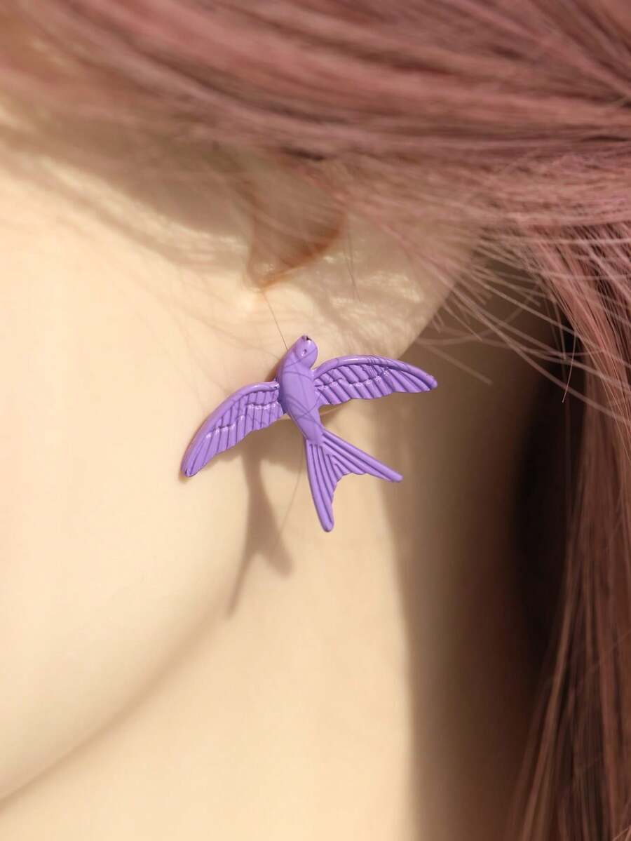 1 Pair Sweet And Cute Metal Purple Swallow Bird Earrings Suitable For Ladies' Daily Wear