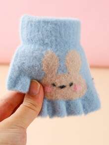 1 Pair Winter Boys' And Girls' Cute Cartoon Rabbit Fingerless Gloves For Toddlers, Infants Warm Mittens