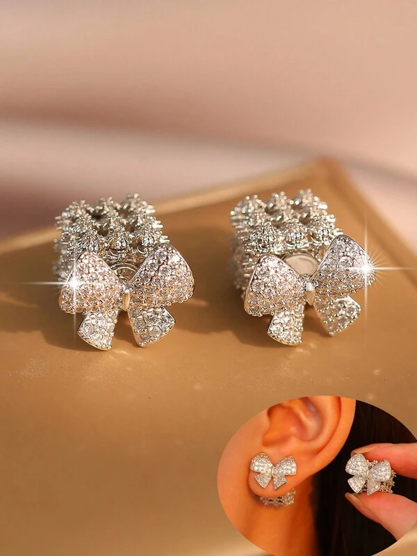 1 Pairs Classic Bowtie Luxury Cubic Stud Earrings For Women Dresses Dating Valentine'S Day Gift
