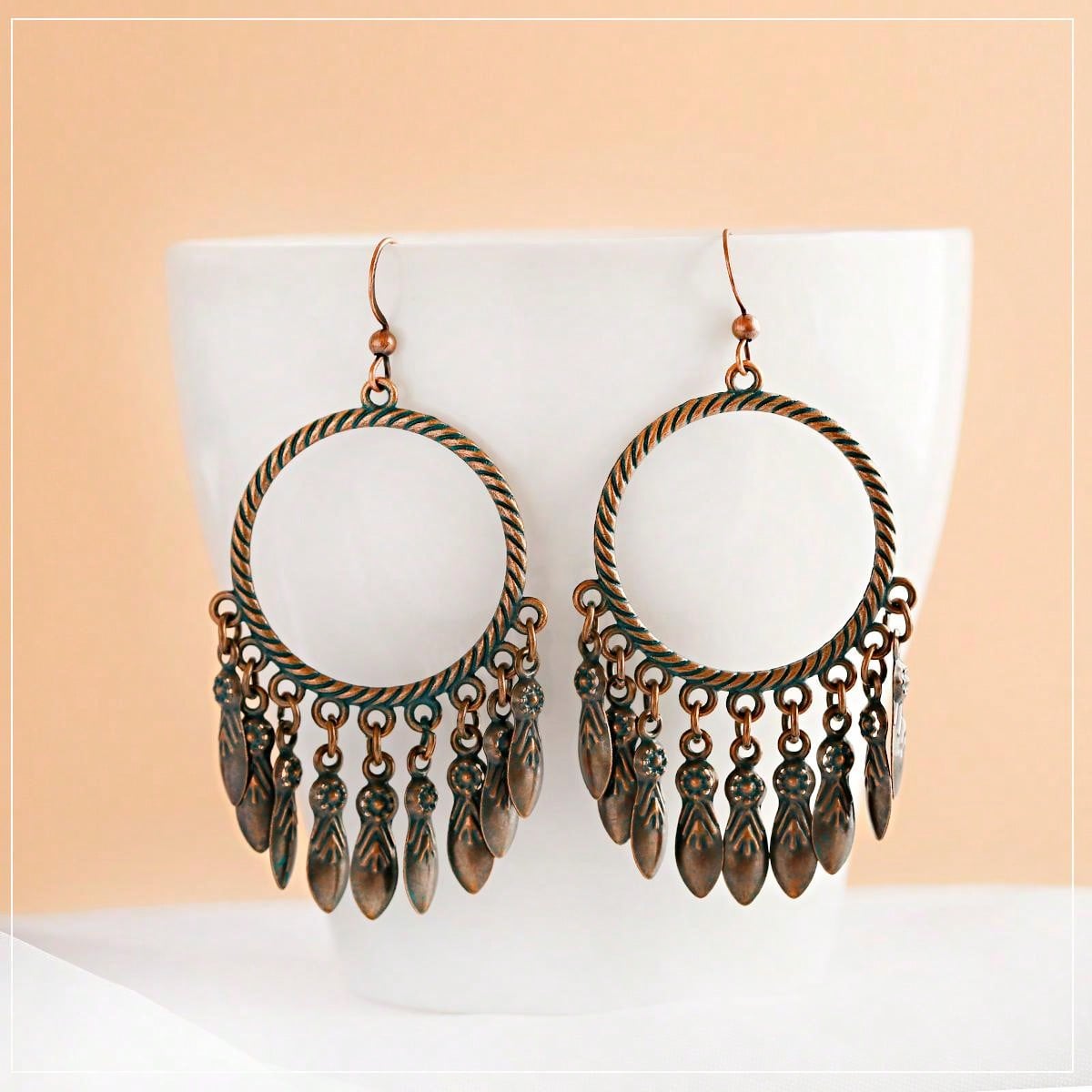 1 Pairs Vintage Bronze Boho Earrings Big Round Dangle Drop Tassels Women Earrings